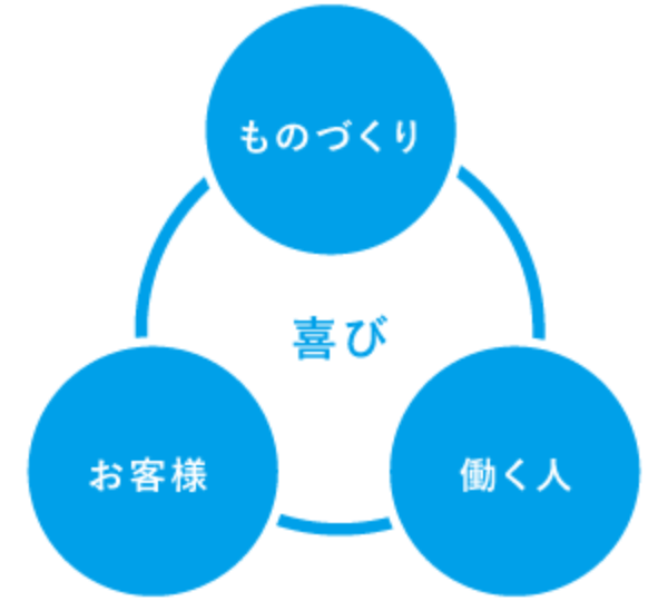 「ものづくり・お客様・働く仲間の喜びを、弊社の喜びとする」という価値観を全社員で共有しながら、持続的な成長を目指して参ります。